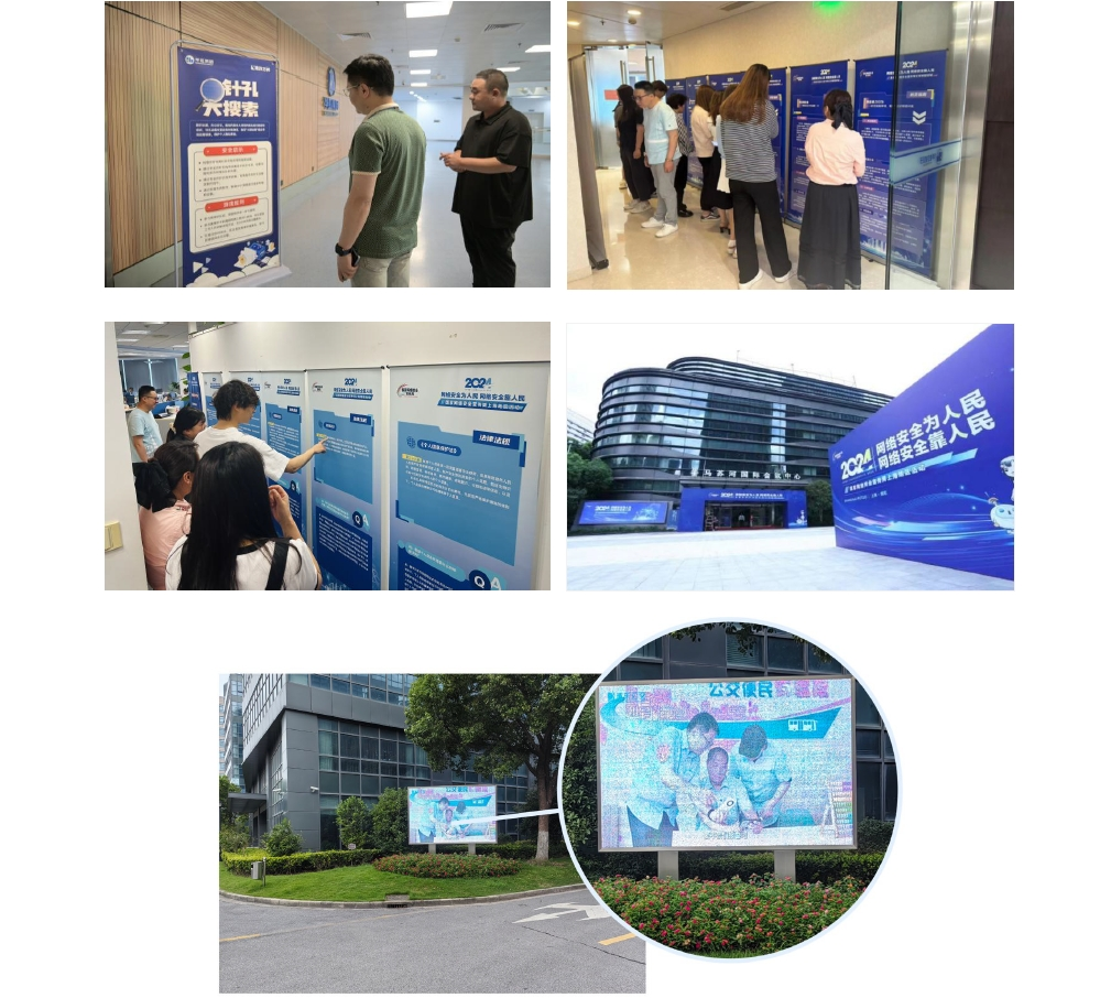 依托云工會平臺開展以網絡安全宣傳為主題的線上學習活動,圍繞《網絡安全法》《數據安全法》等5個主題開展知識競答,激發員工學習網絡安全知識的積極性,檢驗提升員工的網絡安全防護水平。線下設置網絡安全宣傳展板、海報、LED屏幕、宣傳手冊,邀請專家講課、組織培訓、參觀展覽,設計模擬場景查找針孔探頭,提升員工信息安全意識,筑牢個人信息安全之堤,保護企業信息安全。